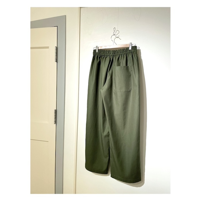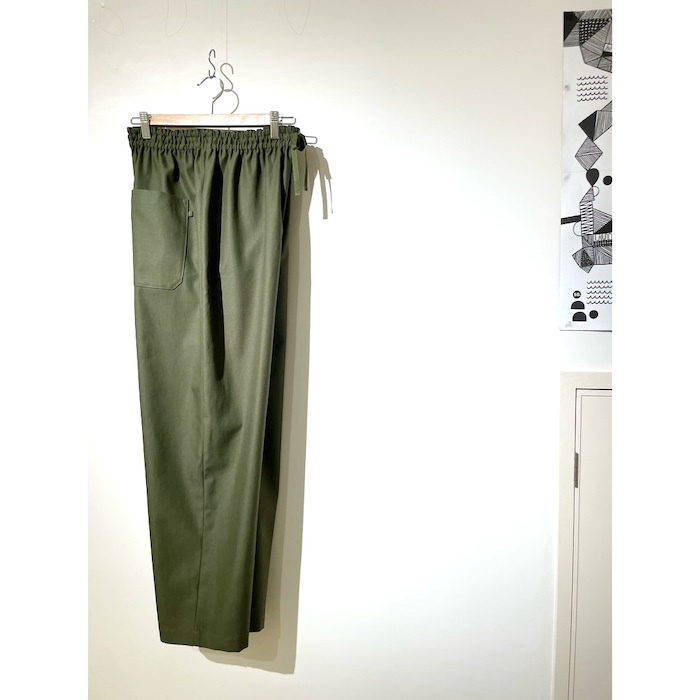 裾に向かって細くなるテーパードパンツです。