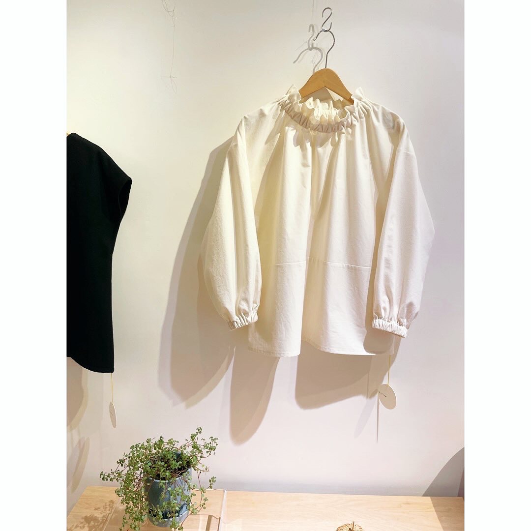 身頃とフリルはハリのある生地で